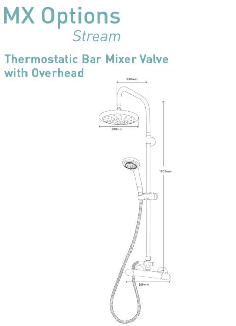 MX Options Stream Thermostatic Bar Mixer With Diverter And Overhead - HMB