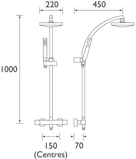 Product Code: AQS SHXDIVFF C Finish: Chrome Product Type: Contemporary Construction: Body is of brass construction Cartridge Type: On/off & diverter = ceramic disc Temperature = Thermostatic cartridge Supply: Gravity (when pumped) and pressurised Inlet Connection: 15mm compression Outlet Connection: G ½" Water Pressure: Min 1.0 bar, Max. 8.0 bar Dimensions for Fitting: 150mm inlet centres