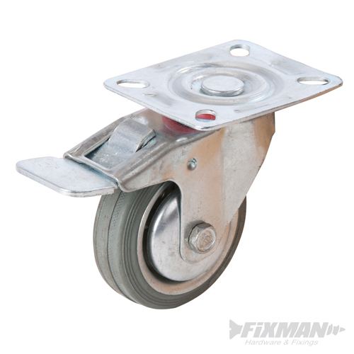 FIXMAN Rubber Castor Swivel with Brake 75mm 50kg - 487739