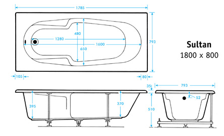Trojan Sultan 1800 x 800 5mm Bath (NTH) - B765 Excludes bath panels. Masses of bathing area available with this bath. Clean lines with plenty of bath shelf space as well.