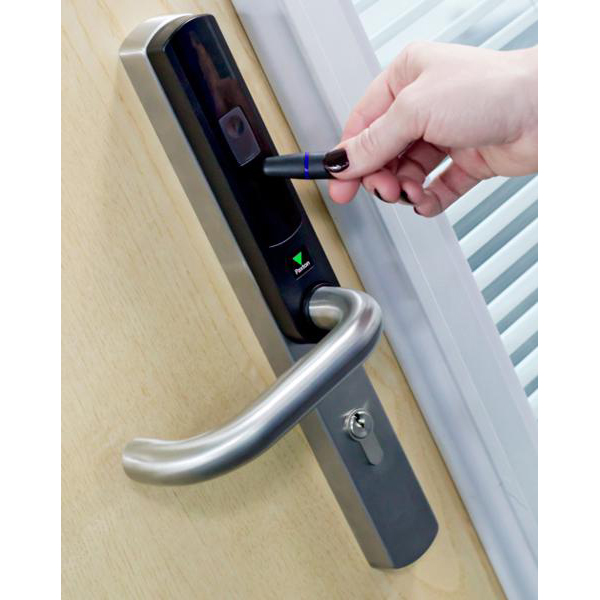 Net2 PaxLock is a battery powered Net2 access control unit in a slimline door handle. Net2 PaxLock comes ready to fit a standard Euro profile lock case (sold separately). It communicates with the Net2 server PC using the low power and secure wireless tech