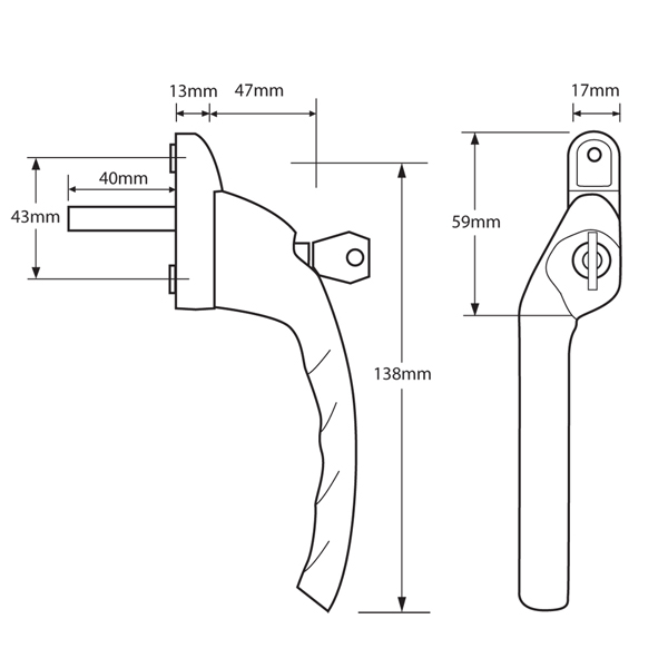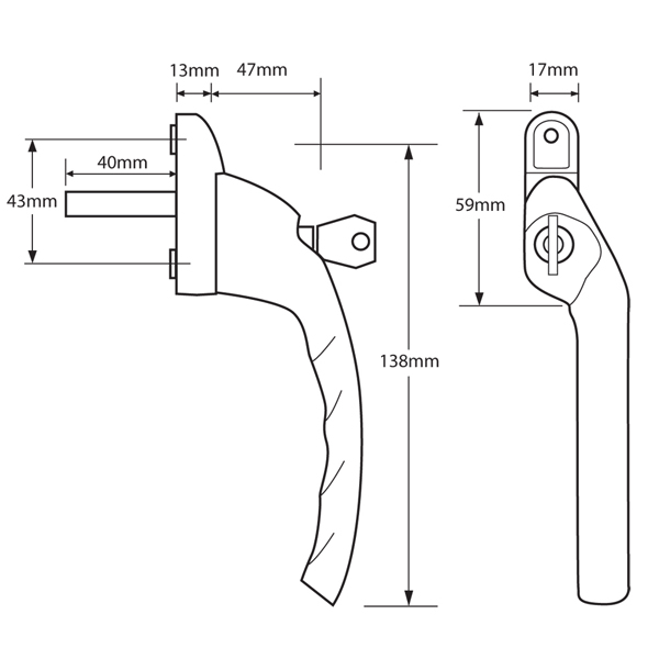 - Handle is automatically locked when closed, and can be deadlocked with the key