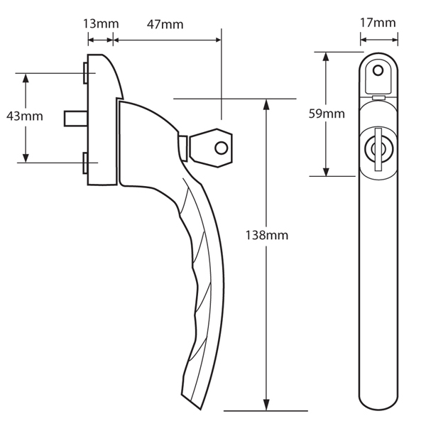 - Handle is automatically locked when closed, and can be deadlocked with the key