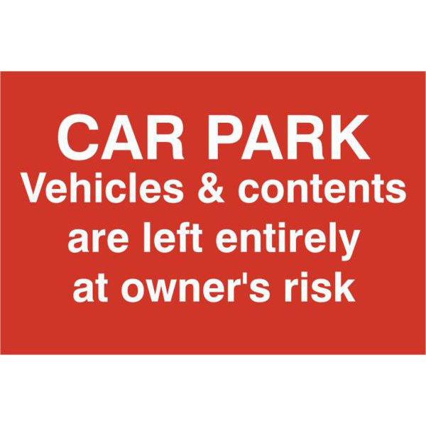 ASEC "Car Par Vehicles & Contents Left Entirely At Owners Risk" 200mm X 300mm PVC Self - 1609