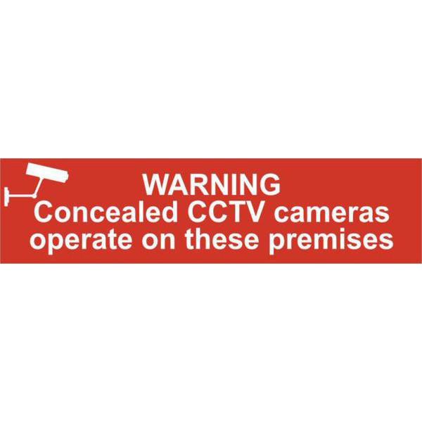 ASEC "Warning Concealed CCTV Cameras Operate On These Premises" 200mm X 50mm PVC Self Adhe - 5254