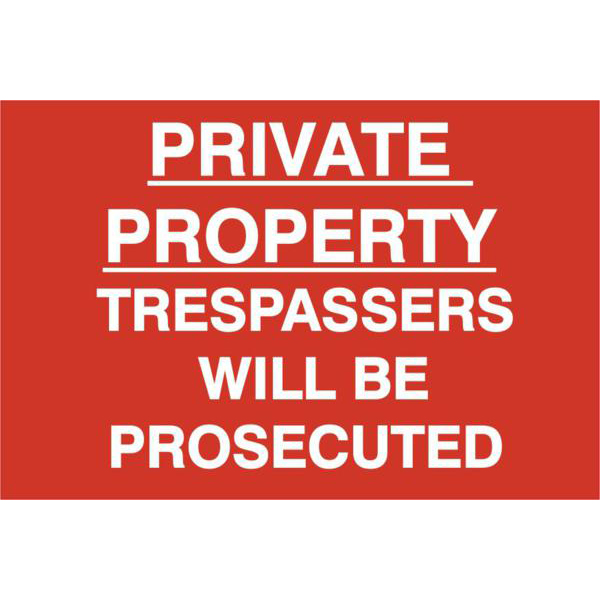 ASEC "Private Property Trespassers Will Be Prosecuted" 400mm X 600mm PVC Self Adhesive Sig - 4250