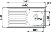 Material Type: Smooth Profile:1 Outflow: Ø52 Bowl Dimensions: 400 x 340 x 150mm Min Base Unit: 50cm Bowl Position: Right Hand Tap Holes: 1 Sink Dimensions 940 x 490mm