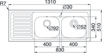 Material Type: Smooth Profile:1 Outflow: Ø52.92 Bowl Dimensions: 400 x 340 x 150mm Min Base Unit: 90cm Bowl Position: Right Hand Tap Holes: 1 Sink Dimensions 1310 x 510mm