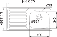 Material Type: Smooth Outflow: Ø52 Bowl Dimensions: 400 x 340 x 150mm Tap Holes: 2 Bowl Position: Right Hand Bending Type: Square Front Sink Dimensions: 762 x 467mm