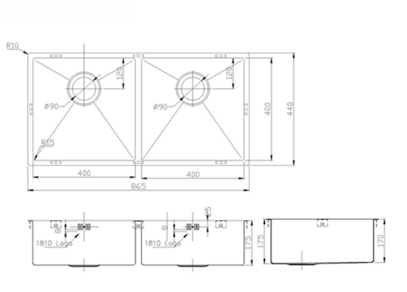 The 1810 Company ZENDUO15 400/400U - ZD/4040/U15/S/084 Zen Range - The Zen Range all have a square bowl, and are based on a contemporary design.